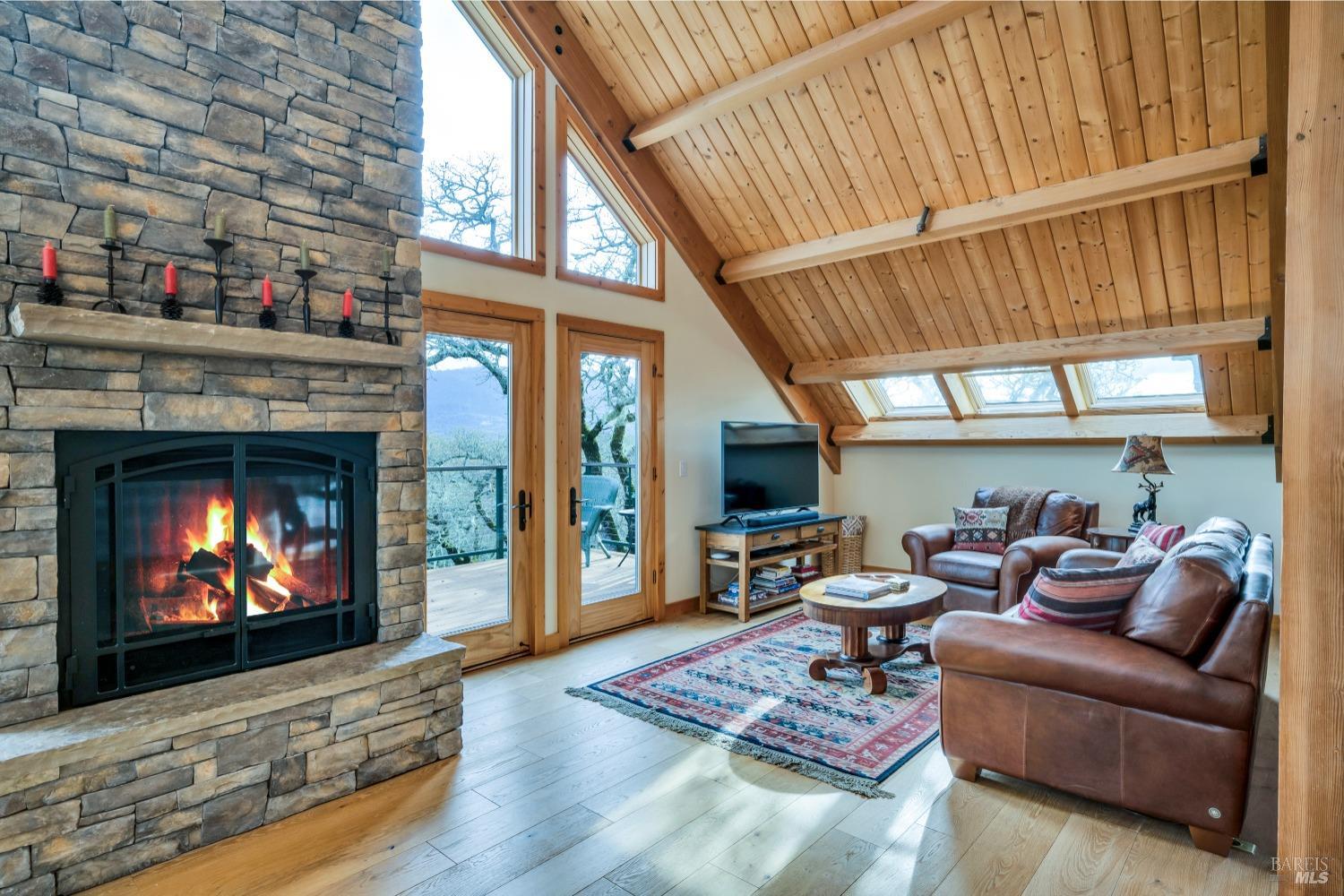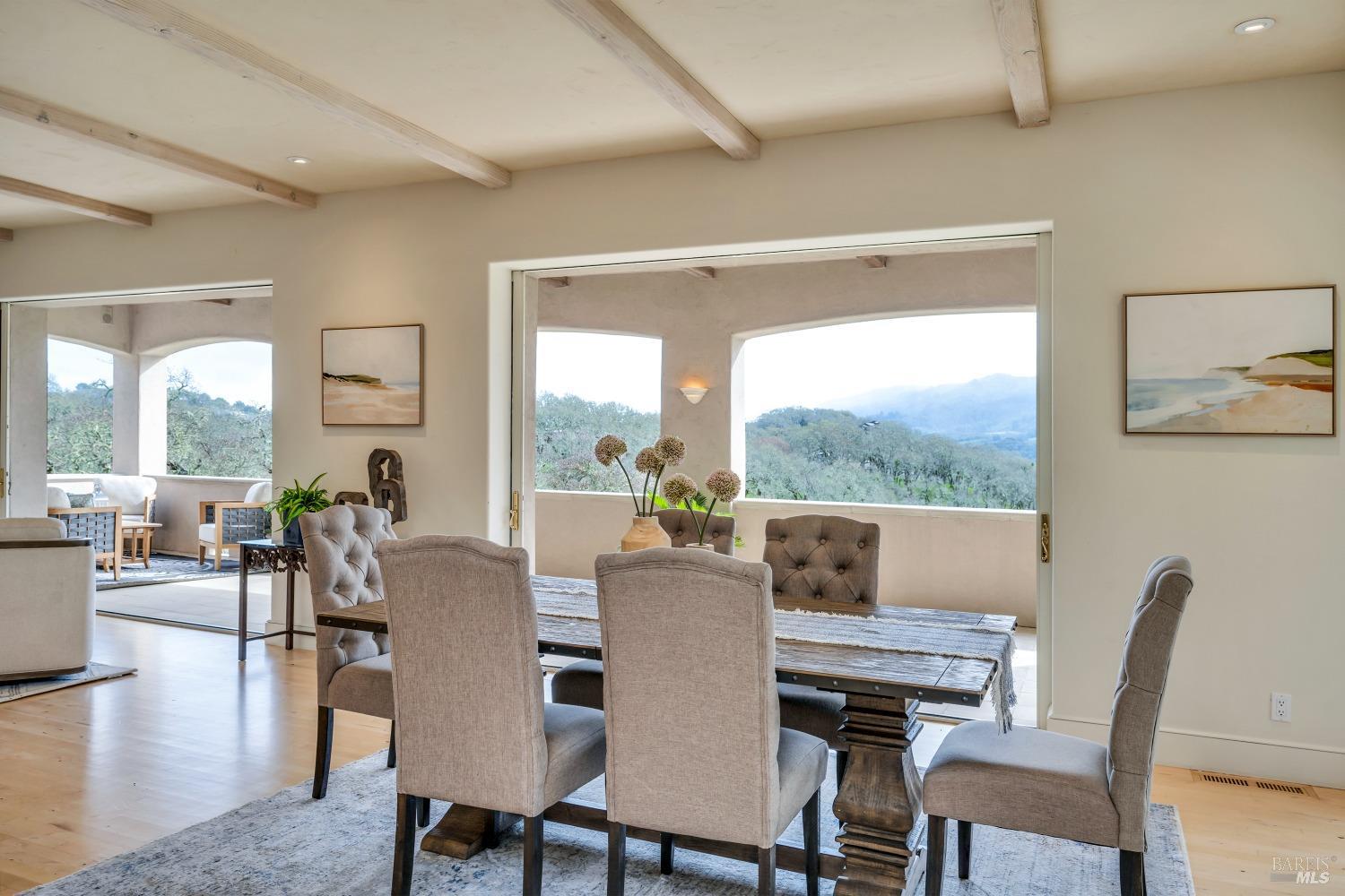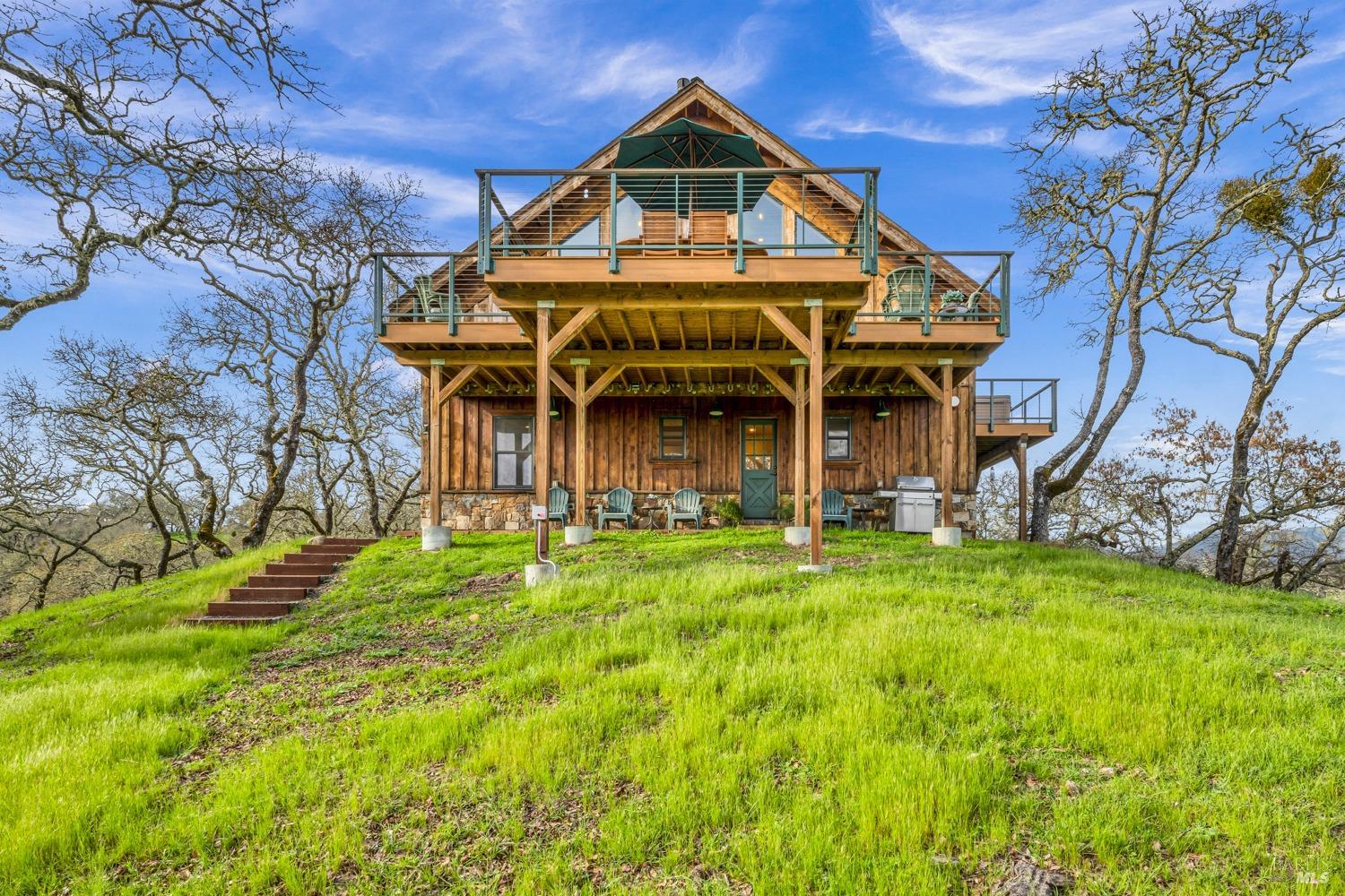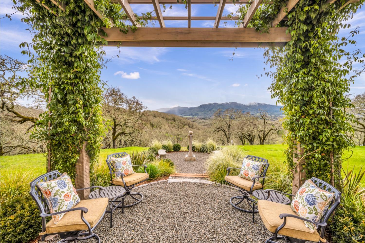 This captivating wine country estate sprawls over 8.47 +/- acres, commanding sweeping views of the Sonoma Valley from every perspective. Located on an exclusive gated road, the meticulously crafted main residence showcases an expansive open floor plan with 3 bedrooms, 3 full baths, and 2 half baths. A separate suite offers a 1-bedroom, 1-bath arrangement for added privacy. An entertainer's dream, the main residence features a spacious great room, a two-sided fireplace, a library, and a game room. Seamlessly connecting indoor and outdoor spaces, sliding glass doors open to a sprawling terrace with breathtaking views. The primary en suite offers a private sanctuary with a personal terrace, hot tub, and a spa-like bath. The property has majestic oaks, scenic paths, and a newly added pergola. Elevated lifestyle with the addition of the refreshed kitchen in the main home, boasting Subzero, Miele, and Thermador appliances, along with new Cambria quartz countertop,sink. A meticulously designed barn house, featuring 1 bedroom, 2 offices, and 2 full baths, all meticulously crafted with superior construction and the finest materials. This barn house includes a wine cellar,spacious high-ceiling room ideal for winemaking/tasting or hobbies. 7 minutes from downtown Glen Ellen.