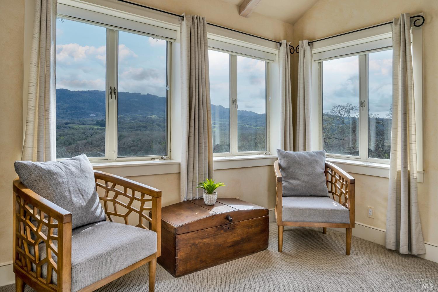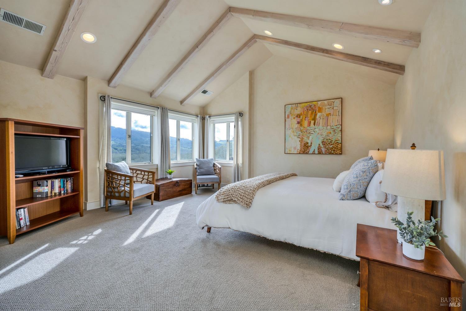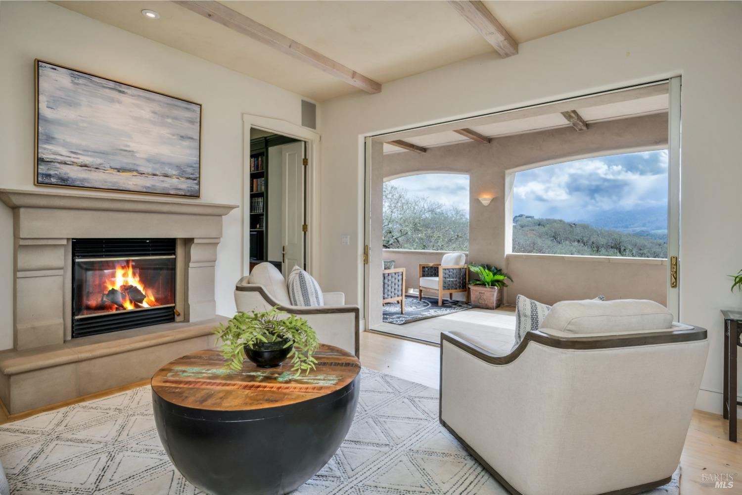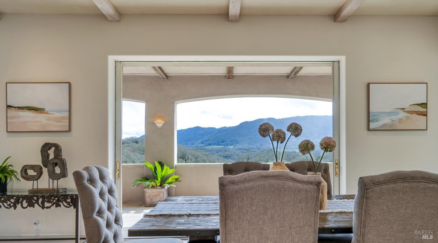 This captivating wine country estate sprawls over 8.47 +/- acres, commanding sweeping views of the Sonoma Valley from every perspective. Located on an exclusive gated road, the meticulously crafted main residence showcases an expansive open floor plan with 3 bedrooms, 3 full baths, and 2 half baths. A separate suite offers a 1-bedroom, 1-bath arrangement for added privacy. An entertainer's dream, the main residence features a spacious great room, a two-sided fireplace, a library, and a game room. Seamlessly connecting indoor and outdoor spaces, sliding glass doors open to a sprawling terrace with breathtaking views. The primary en suite offers a private sanctuary with a personal terrace, hot tub, and a spa-like bath. The property has majestic oaks, scenic paths, and a newly added pergola. Elevated lifestyle with the addition of the refreshed kitchen in the main home, boasting Subzero, Miele, and Thermador appliances, along with new Cambria quartz countertop,sink. A meticulously designed barn house, featuring 1 bedroom, 2 offices, and 2 full baths, all meticulously crafted with superior construction and the finest materials. This barn house includes a wine cellar,spacious high-ceiling room ideal for winemaking/tasting or hobbies. 7 minutes from downtown Glen Ellen.