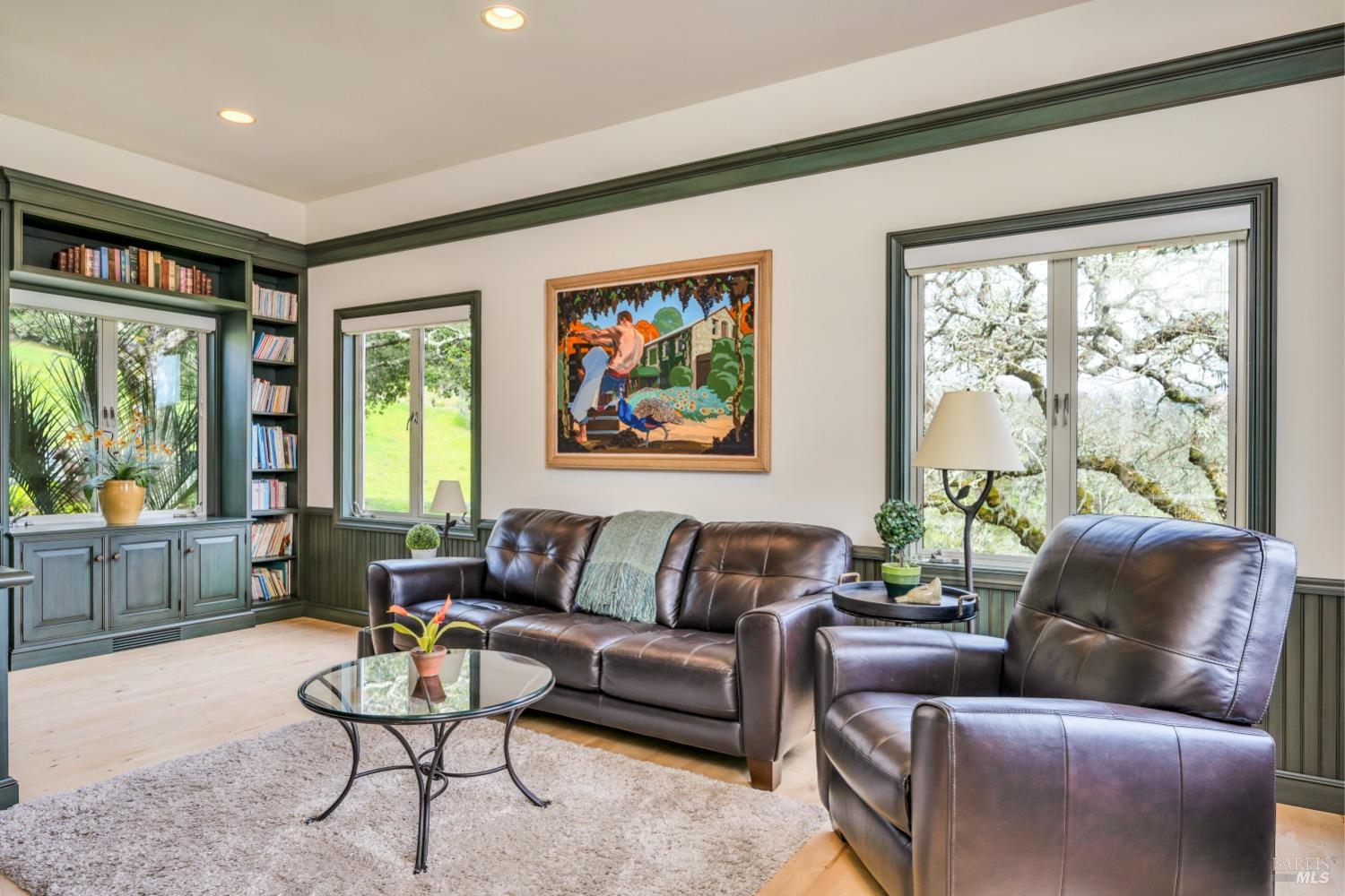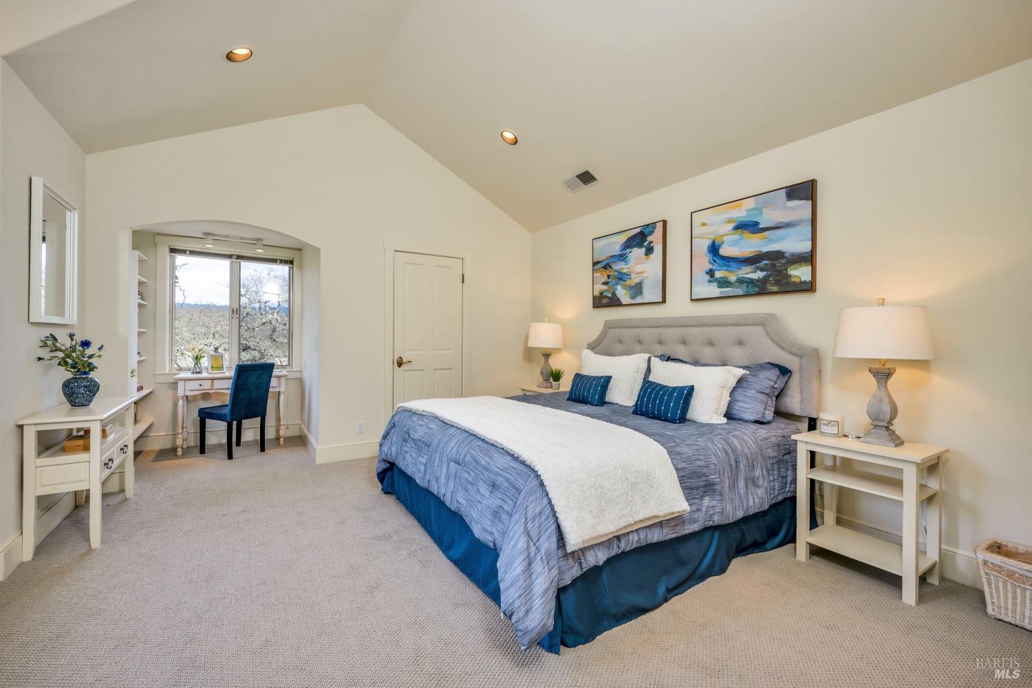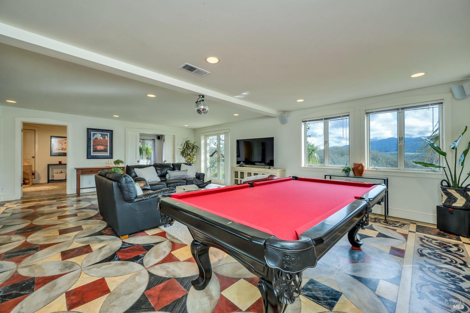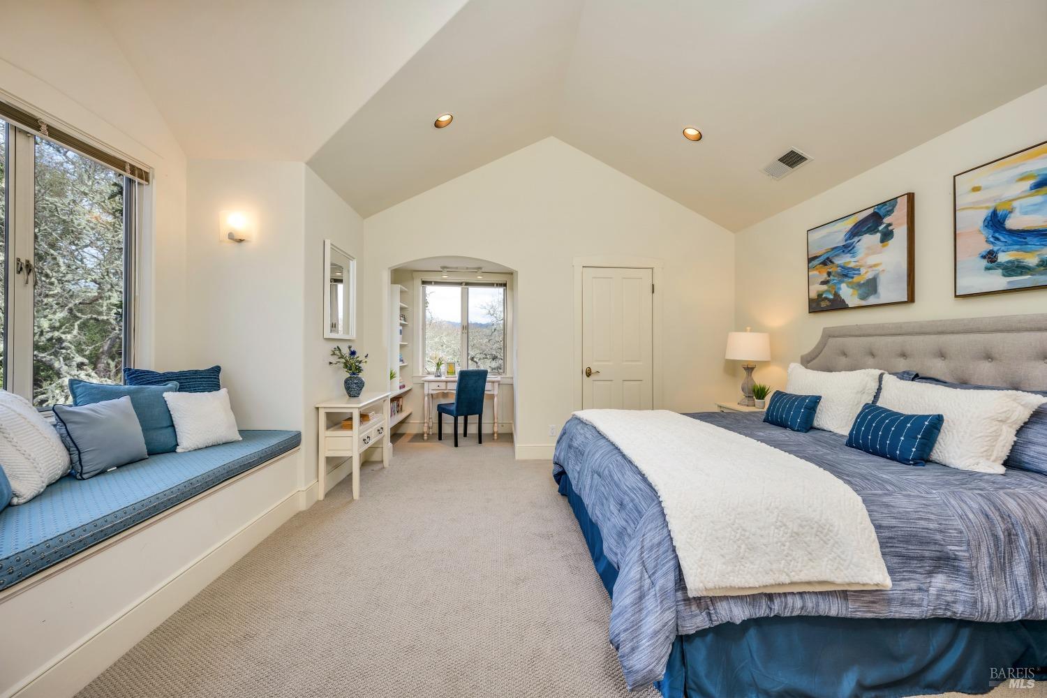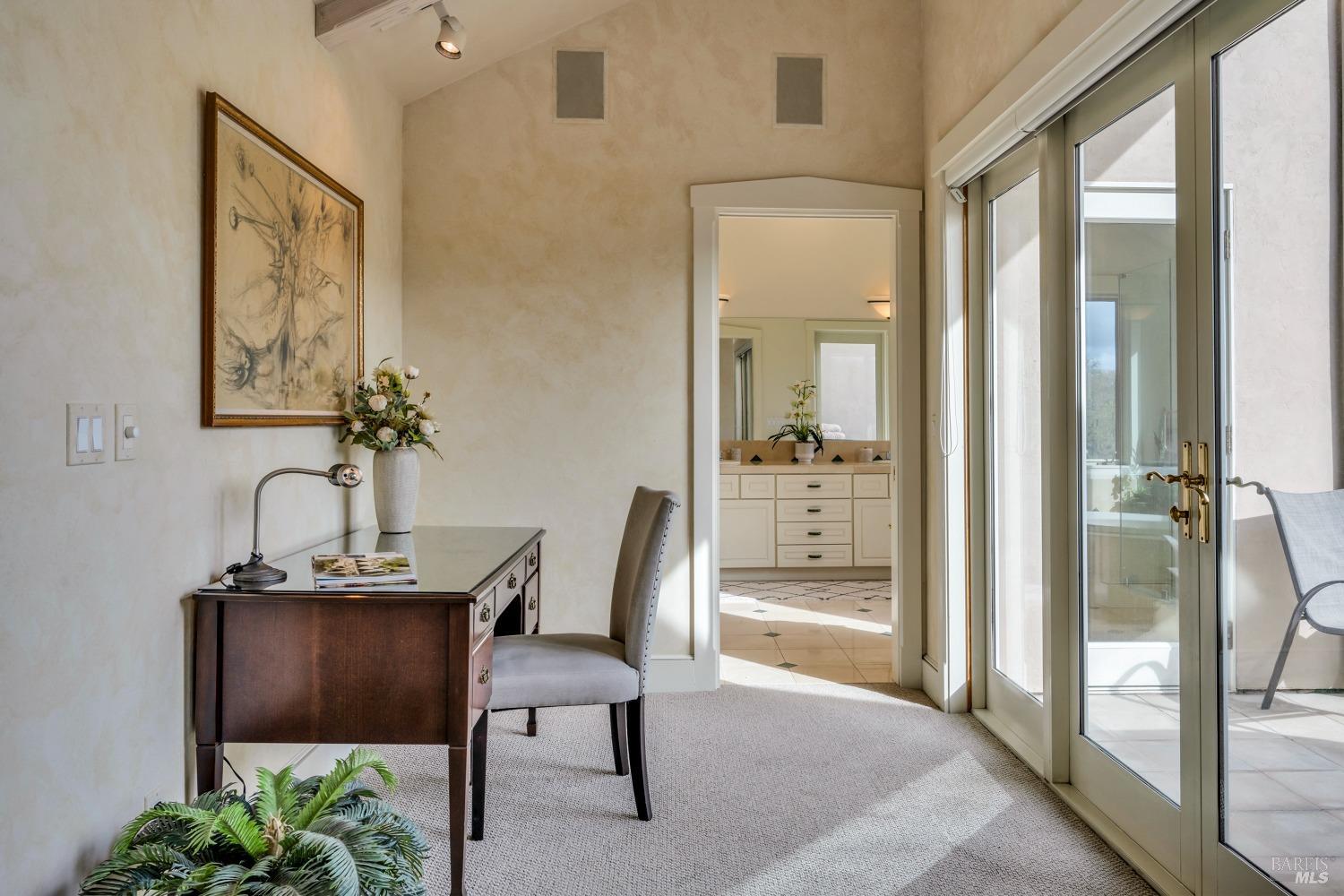 This captivating wine country estate sprawls over 8.47 +/- acres, commanding sweeping views of the Sonoma Valley from every perspective. Located on an exclusive gated road, the meticulously crafted main residence showcases an expansive open floor plan with 3 bedrooms, 3 full baths, and 2 half baths. A separate suite offers a 1-bedroom, 1-bath arrangement for added privacy. An entertainer's dream, the main residence features a spacious great room, a two-sided fireplace, a library, and a game room. Seamlessly connecting indoor and outdoor spaces, sliding glass doors open to a sprawling terrace with breathtaking views. The primary en suite offers a private sanctuary with a personal terrace, hot tub, and a spa-like bath. The property has majestic oaks, scenic paths, and a newly added pergola. Elevated lifestyle with the addition of the refreshed kitchen in the main home, boasting Subzero, Miele, and Thermador appliances, along with new Cambria quartz countertop,sink. A meticulously designed barn house, featuring 1 bedroom, 2 offices, and 2 full baths, all meticulously crafted with superior construction and the finest materials. This barn house includes a wine cellar,spacious high-ceiling room ideal for winemaking/tasting or hobbies. 7 minutes from downtown Glen Ellen.