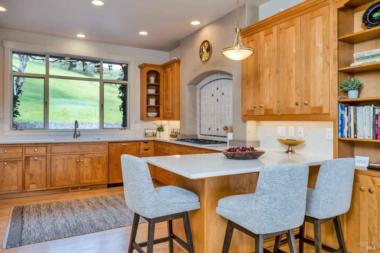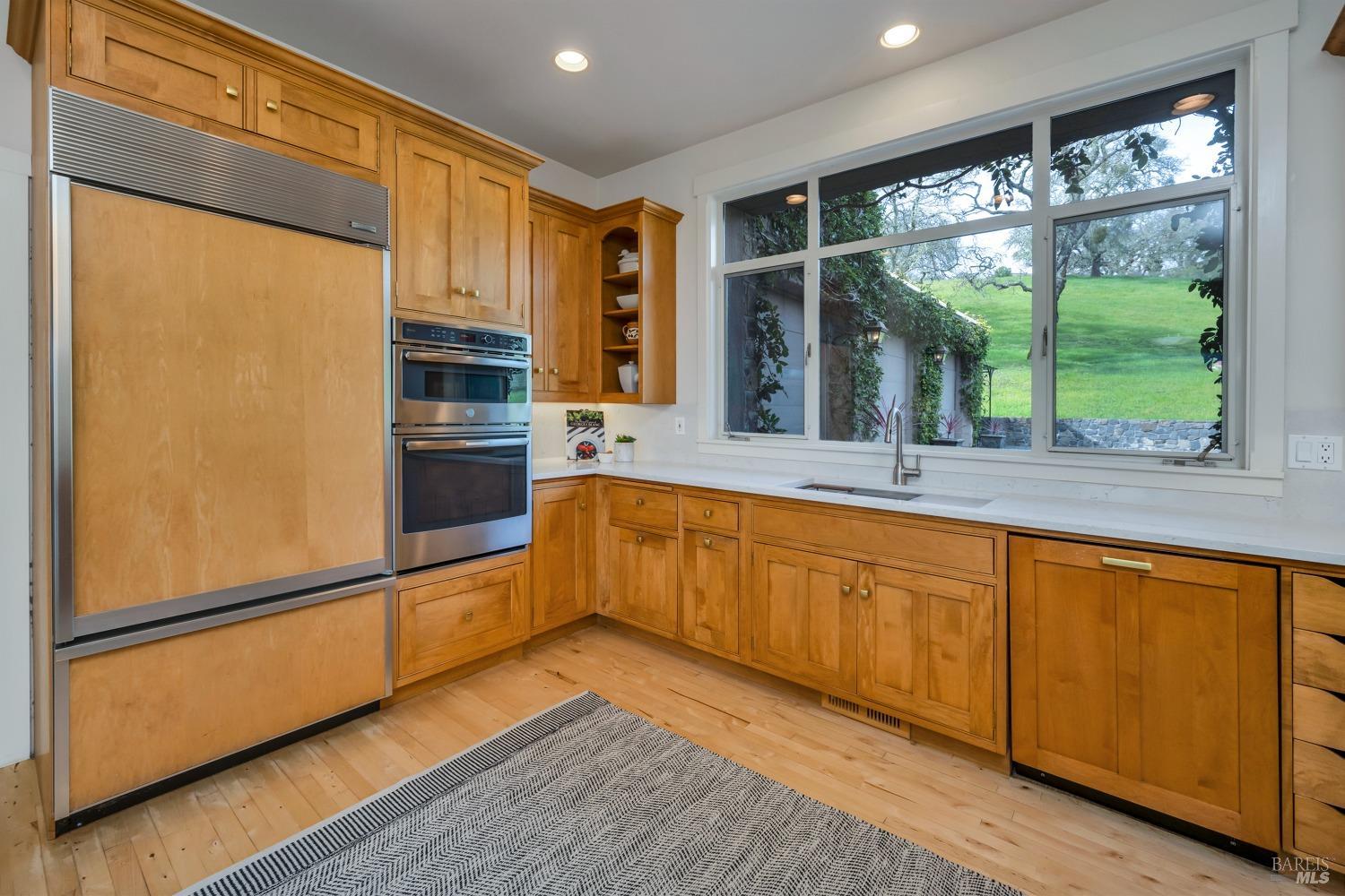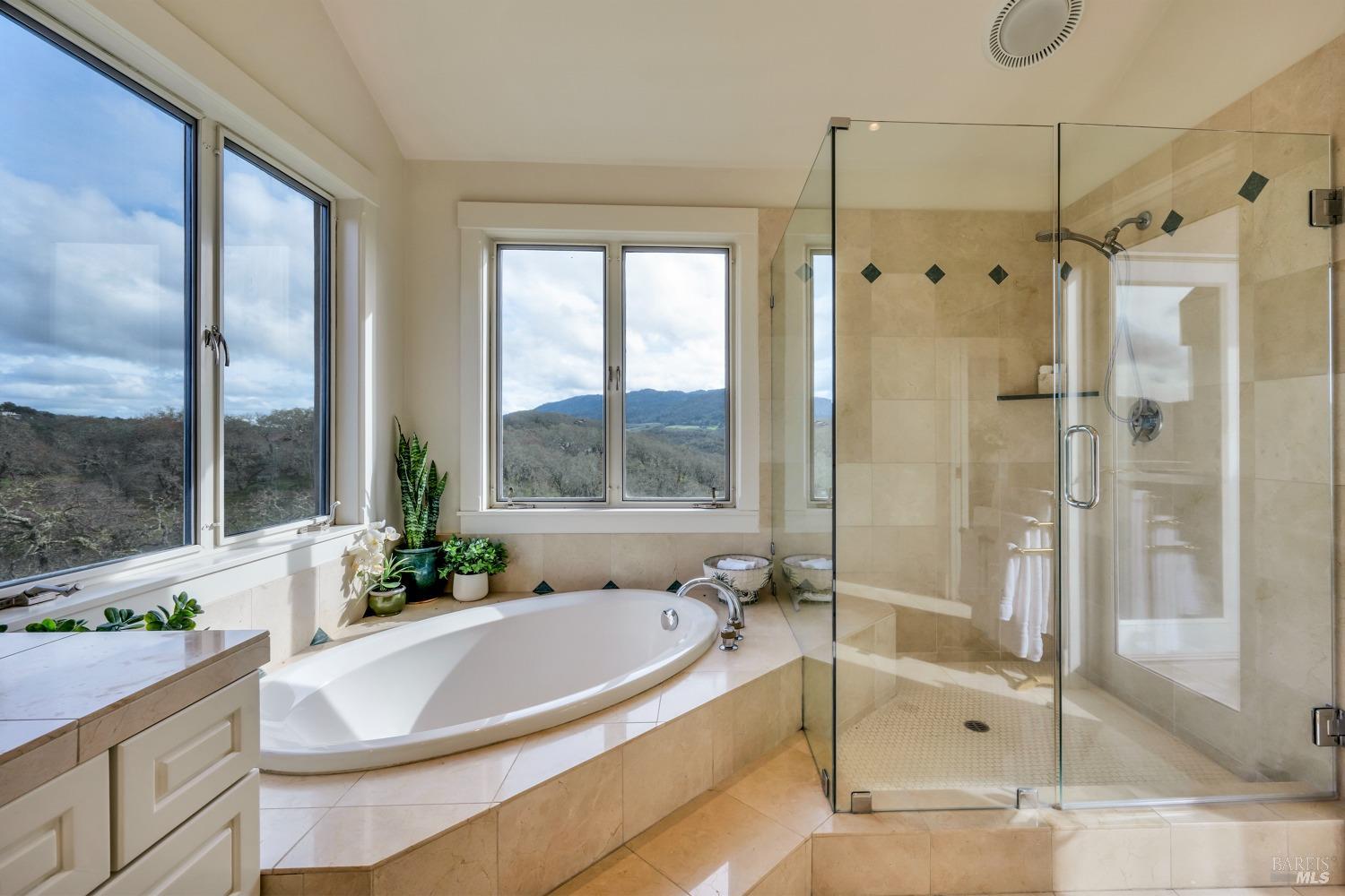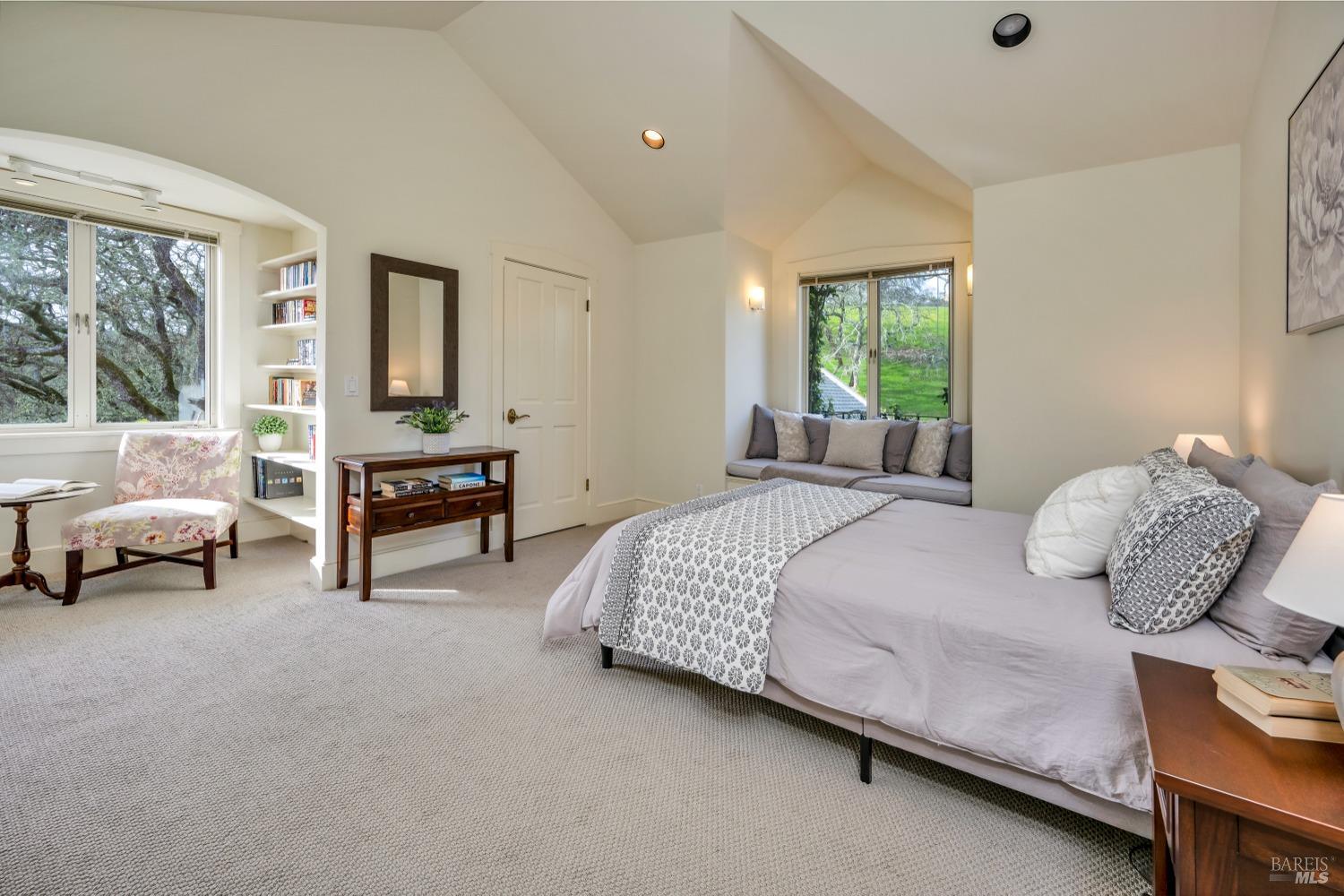 This captivating wine country estate sprawls over 8.47 +/- acres, commanding sweeping views of the Sonoma Valley from every perspective. Located on an exclusive gated road, the meticulously crafted main residence showcases an expansive open floor plan with 3 bedrooms, 3 full baths, and 2 half baths. A separate suite offers a 1-bedroom, 1-bath arrangement for added privacy. An entertainer's dream, the main residence features a spacious great room, a two-sided fireplace, a library, and a game room. Seamlessly connecting indoor and outdoor spaces, sliding glass doors open to a sprawling terrace with breathtaking views. The primary en suite offers a private sanctuary with a personal terrace, hot tub, and a spa-like bath. The property has majestic oaks, scenic paths, and a newly added pergola. Elevated lifestyle with the addition of the refreshed kitchen in the main home, boasting Subzero, Miele, and Thermador appliances, along with new Cambria quartz countertop,sink. A meticulously designed barn house, featuring 1 bedroom, 2 offices, and 2 full baths, all meticulously crafted with superior construction and the finest materials. This barn house includes a wine cellar,spacious high-ceiling room ideal for winemaking/tasting or hobbies. 7 minutes from downtown Glen Ellen.